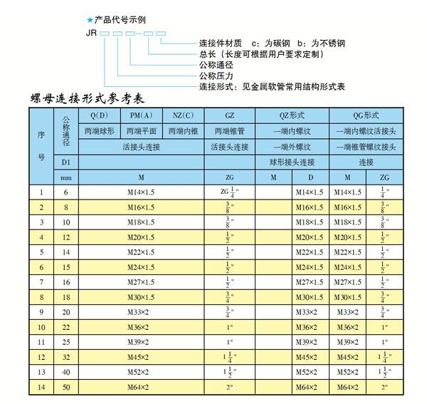 波紋金屬軟管標準接頭型式和代號